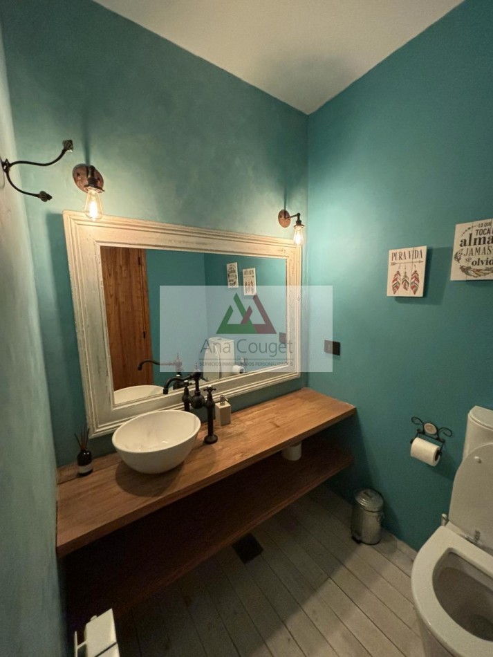 Moderna casa construida en hormigòn, de 6 ambientes, en barrio ecuestre con vista a la cancha de Polo, con detalles de categorìa. Living comedor amplio con muebles modernos, mesa para 10 personas, moderna pantalla de Tv colgante y salamadra. Cocina integrada, con barra. Por el pasillo que comunica hacia la parte de atràs de la casa hay una suite junior con baño y vestidor, 2 dormitorios con un baño completo que comparten y la enorme suite principal con baño y amplio vestidor. Desde el living hacia la parte de adelante se encuentra la piscina y una galerìa techada con sillones muy còmodos y hogar; y hacia la parte de atras, otra galerìa techada con parrilla; jardìn con juego de sillones de hormigòn con fogonero en el centro. Lindisima casa para disfrutar de todas sus vistas. En la parte de abajo de la casa en el espacio garage hay un playroom de generosas dimensiones con un cuarto con baño completo y lavadero con lavarropa y caldera. Se vende amoblada y equipada.